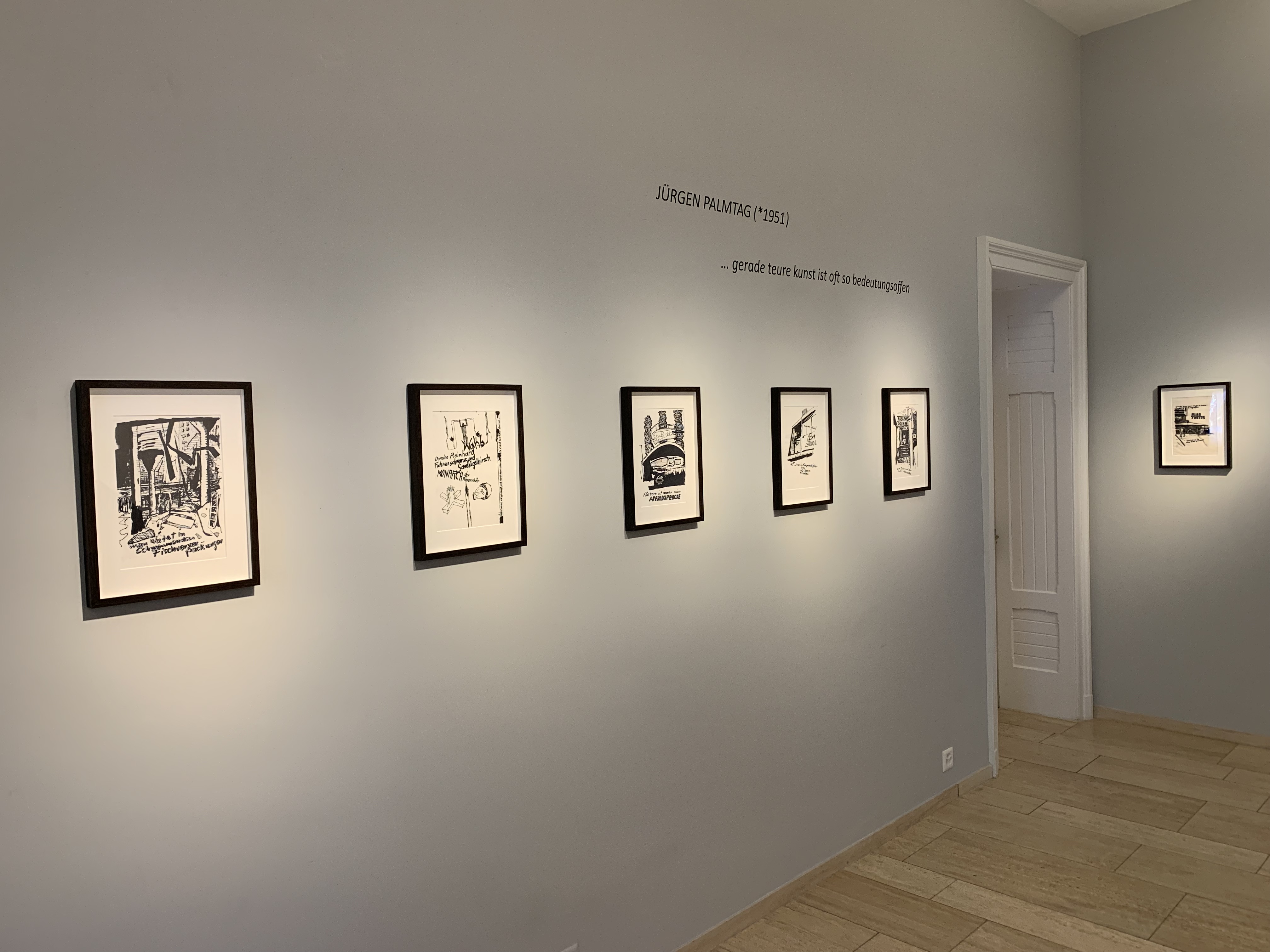 Jürgen Palmtag, born 1951 is a draftsman by heart, creating bewildering landscapes and cityscapes filled with words, phrases, jokes and riddles thereby often introducing a new language. His works want to be seen and read out loud. Drawing has been his passion for almost five decades. With his wit and often dry humor he captures his audience and puzzles us. A chronist of our time. His drawings only really work with his text creations and vice versa. None can live without the other.